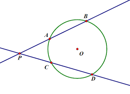 - 아래 그림에서, $\overline {PA} \cdot \overline {PB} = \overline {PC} \cdot \overline {PD}$ 임을 설명하세요.